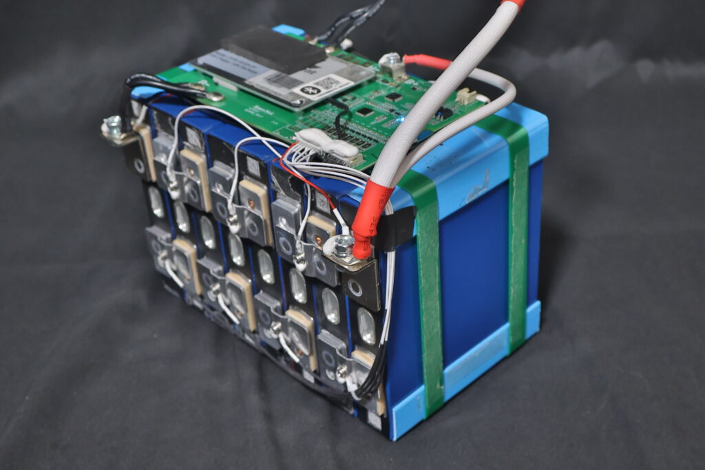 そこで、弊社でもLiFePO4を使用したディープサイクルバッテリーの開発に着手しました。しかし、体積エネルギーが小さい為のデメリット、容量小さくなる事、重量が重くなることは、ある程度妥協したとしても、並列使用の安全性を確保する事に注力し、より大きな電力使用を想定するディープサイクルバッテリーには並列仕様が必須と考えてきました。